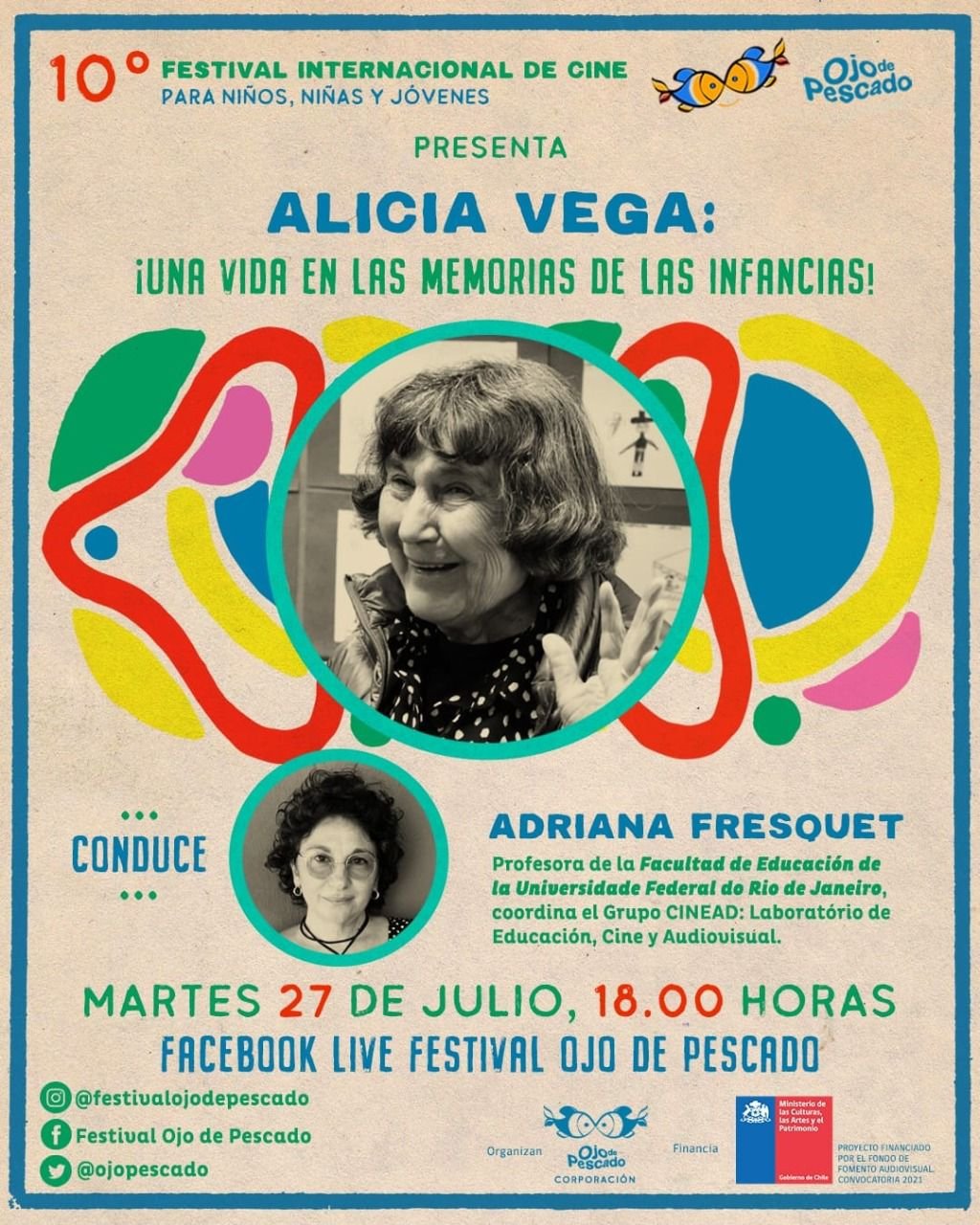 Alicia Vega fala sobre: Una vida en las memorias de las infancias. Mediado pela professora Adriana Fresquet Dia 27 de julho 18h Informações: www.ojodepescado.cl
